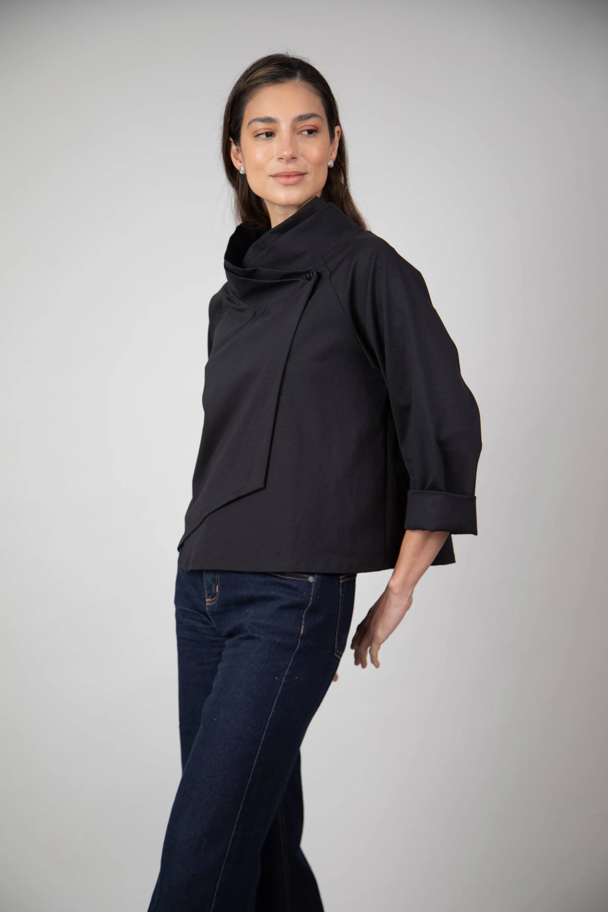 La blusa chaqueta Zoe tiene un diseño estructurado y minimalista con un elegante cruce asimétrico y cuello envolvente. Una prenda sofisticada que combina comodidad y estilo, perfecta para looks modernos y atemporales.